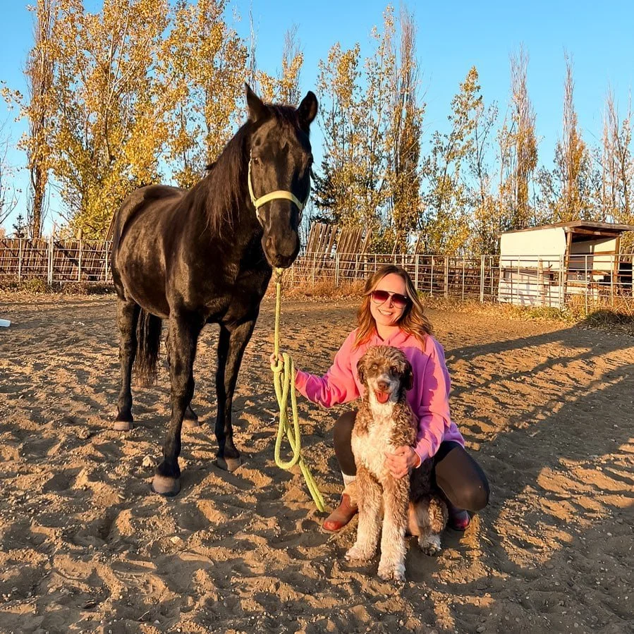 Today, Katie has Olive, an Australian Shepard/Poodle cross and Octane, a Morgan horse gelding. In her spare time, you can find her & Olive playing Flyball, Disc, Scent Work and Dock Diving (yes, Doodle’s can do dog sports, too!) or out at the barn with Octane. With Olive & Octane by her side, Katie remains committed to learn, grow, and advocate for kind, science-based training to help animals learn & thrive. She is dedicated to supporting both ends of the leash!